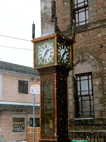 小樽八音盒堂之前矗立着一座蒸汽钟(Steam Clock),于1977年打造,来自加拿大,高5.5米,是世界上最大的蒸汽钟。这座蒸汽钟让我想起了加拿大温哥华的Gas Town,镇上也有一座这样的蒸汽钟,如出一辙,果然是来自加拿大。