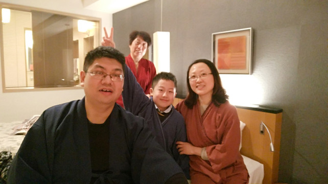 房间里有配备与入住人数相同数量的浴衣,长短款都有。酒店的特色之一就是所有客人在酒店公共区域和餐厅都可以自由穿着浴衣,一种很别样的霓虹风格体验。我们也入乡随俗,浴衣一家门走起: