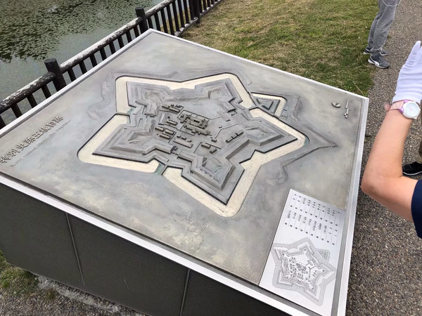 这是城内唯一一座大型建筑。不同于日本其它地方的城,这里本身是靠护城河和五棱土墙来达到防御目的,简单地理解,就是个五角星形状的战壕。