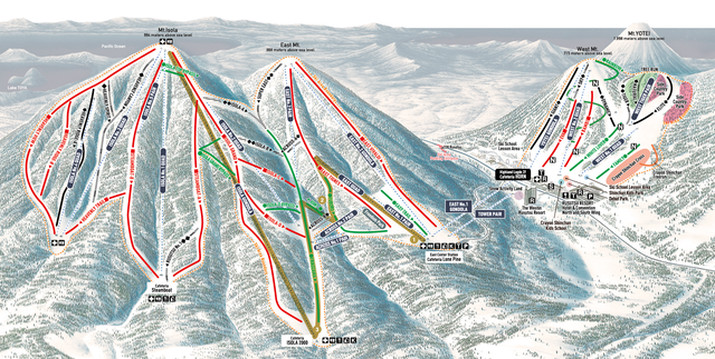2、中级以上就去东山和伊索拉山。东山雪道数量不多,但眺望景色好,雪道长。伊索拉山雪道多,有难度的雪道位于这里。