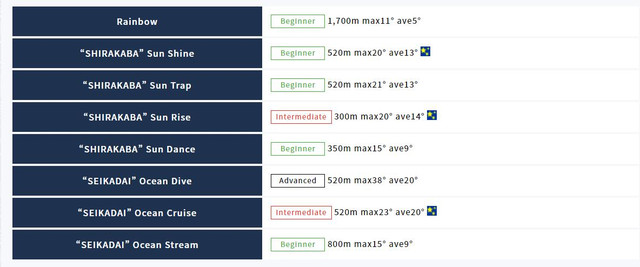 手稻滑雪场的两大滑雪区共有15条雪道。