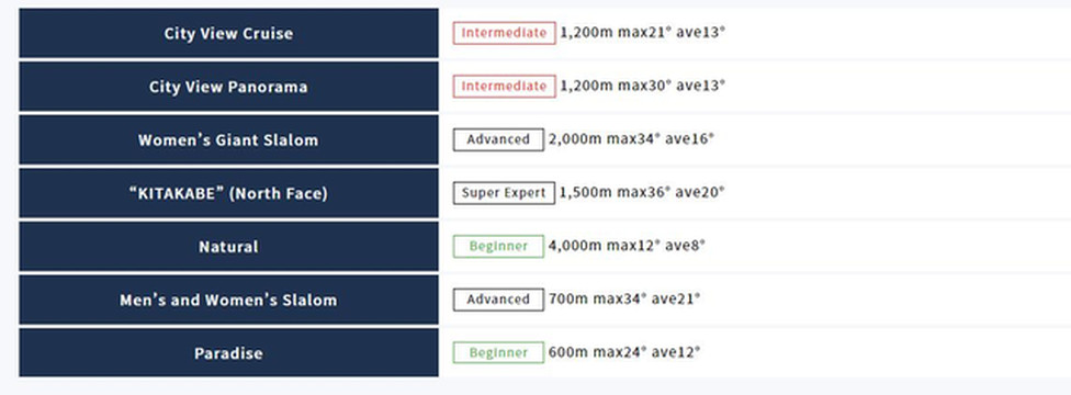雪道名称与难易程度请见下图:
