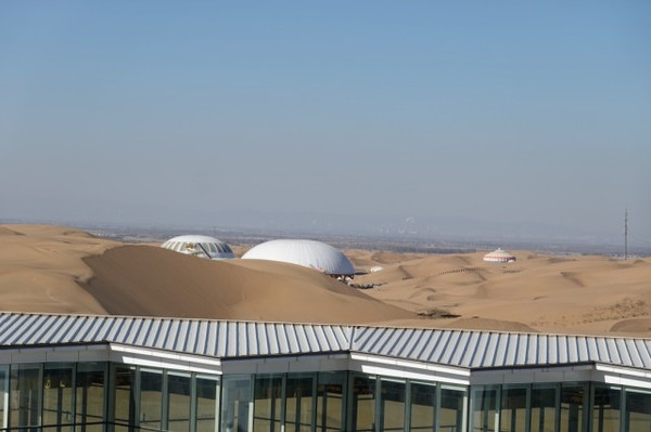 莲沙度假岛(又称:响沙湾莲花度假酒店):不使用砖、瓦、沙、石、水泥、钢筋而建造的绿色建筑,莲沙度假岛是以佛教文化为主题的沙漠休闲度假岛,据说凡是在响沙湾工作的员工都要会背弟子规,响沙湾景区对员工的修养及待人接物的礼貌常识等等还是非常重视的。