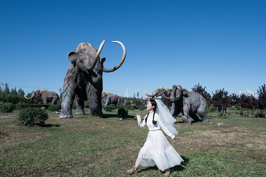 猛犸象作为早已灭绝的物种之一,在这里得到了最为完美的复刻。充满力量的肌肤与毛发,洁白的象牙。它们或低头觅食,或仰天长啸,或悠然行走,所有一切都是如此真实,真实到自己似乎又一次穿梭了漫长岁月,走到了哪个苍茫荒凉的时代~