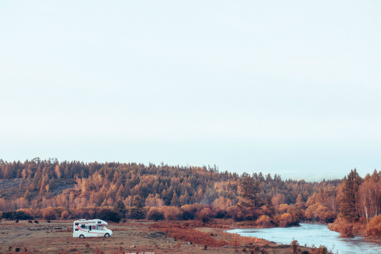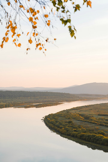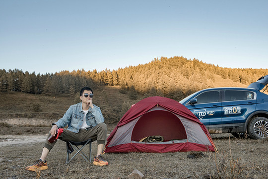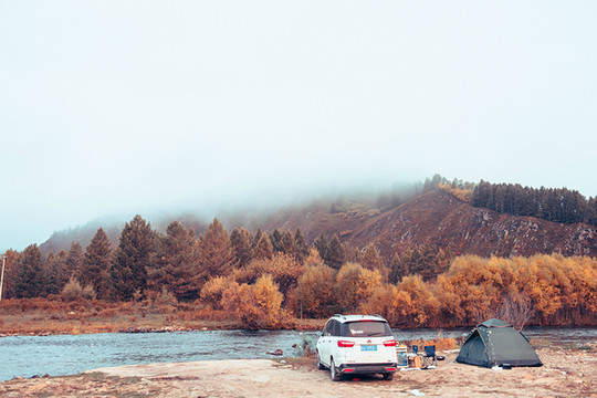 远处乳白色的浓雾充满了山丘,进处金色的树林沉默着,眼前的小溪缓缓地流淌。在河边搭上帐篷,摆出餐具,在这山水之间,造出人间烟火气。