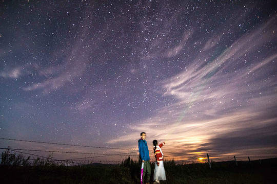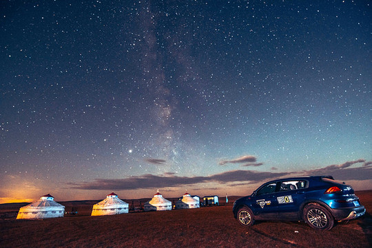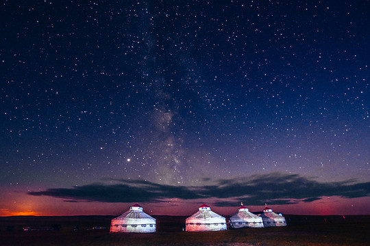 ————追逐星空银河在临江小镇: 北方的天空看上去总是那么的广阔无垠,当满天繁星遍布头顶的天空时,抬头望去,已是到了人间仙境一般。天上的长河没有尽头,地上的蒙古包点缀着广袤的大地,在黄昏时候,天地人融为一体,相得益彰,形成了一幅绝美的画面。