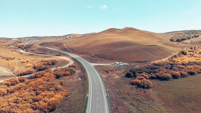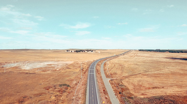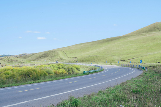 笔直的公路通向远方,一路都是美丽的风景。蓝天白云伴着清风扑面而来,旅客带着愉悦的心情在放声高歌。