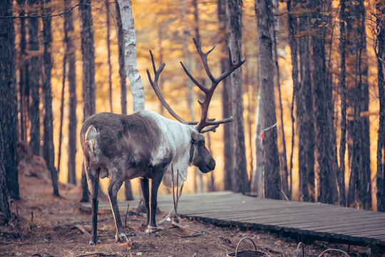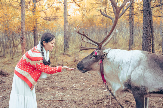 评论额尔古纳 敖鲁古雅驯鹿园 林深时见鹿,海蓝时见鲸。内蒙的秋天就是如此泾渭分明,一半绿意盎然,一半金黄璀璨。在稀稀疏疏的树林之间,几只健美的鹿穿梭其中。它们金黄柔顺的皮毛和山林的颜色融为了一体。万物皆有灵,鹿有灵,山林也有灵。鹿装点了山林,山林也为鹿披上了精美的外衣。