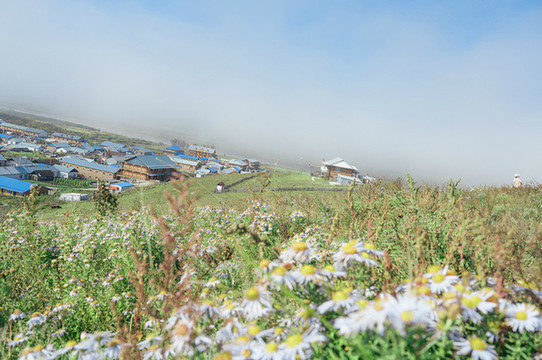 当你环顾四周,不知不觉就沉醉在了其中。这里的一切都是这么的神秘而美丽,当你远远眺望,绵延的草原没有清一色的嫩绿,而是时不时的露出沉稳的土地,黄绿起伏中宛若波涛一般涌来。到了小镇边的河流旁却又猛地停下,似乎是不忍破坏这条清澈见底,秀丽如美人的河流一般,让人情不自禁的就想起一句俗语来——英雄难过美人关。而当你抬头之时,蓝天似乎离你是如此之近,只是挥挥手,云朵就停留在了手中。低头俯视,之间草原之中不知何时开出了朵朵小野花,蓬勃的生命力在这一刻席卷而来,虽然他们没有牡丹般的贵气,玫瑰般的浪漫,但他们却有着一种独特的韵味,顽强而充斥着生机,朴素却又秀美,配上童颜朴素的小镇,真是让人感觉自己走进了桃源之中~