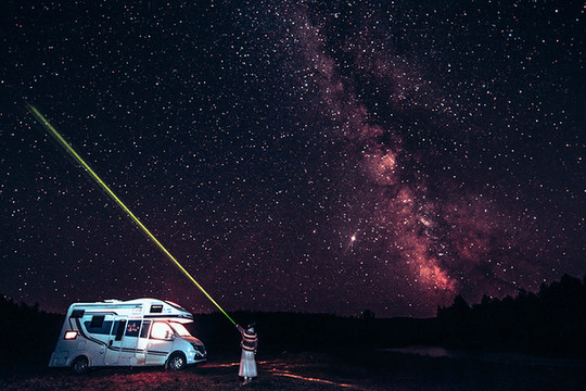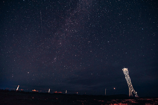 银河一泻千里,流星偶尔划过,天上的星星点亮天空;广袤的土地一望无际,地上的灯点缀宽广的土地。千百万的光交汇在一起,编制成了一幅精美的风景画。