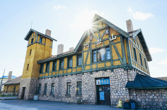 评论阿尔山国家森林公园——阿尔山火车站: 阿尔山火车站不像是一个火车站,反而像一家小酒馆。石纹墙壁和暗黄色墙壁组在一起,琉璃瓦的房顶棱角分明,安静而优雅。