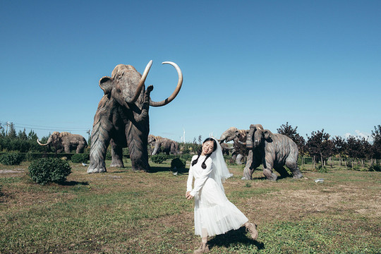 更加让人舒适的是,这里不仅仅有着各式各样的猛犸象,更有着无数匠心独具的摆件。配上黄绿相间,一览无遗的草原,澄澈蔚蓝如宝石般的天际,温暖的阳光,轻拂的微风,白云,小车,爱人... 所有的一切都是这么的悠然,要是不来几张定格一生的照片,那可就是大大的遗憾了~