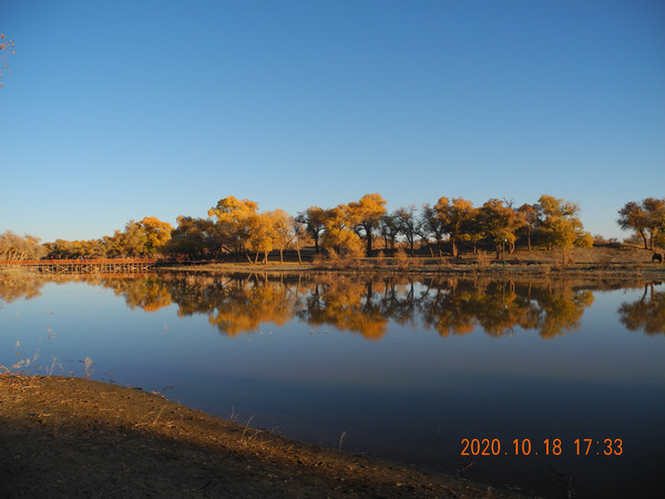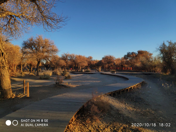 本着昨日的经验我们还是准备再日落时分赶回门口的景区,继续无人且安静的就专属于我们的胡杨林。
