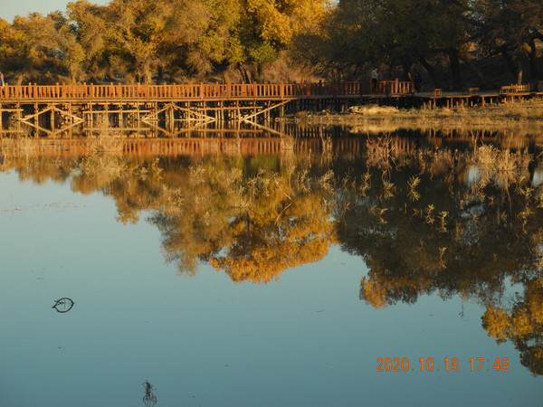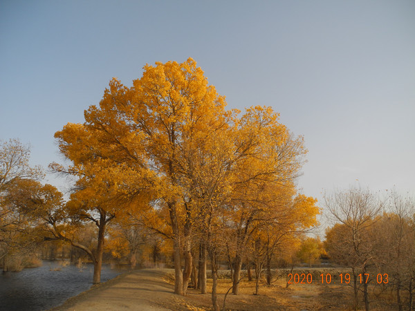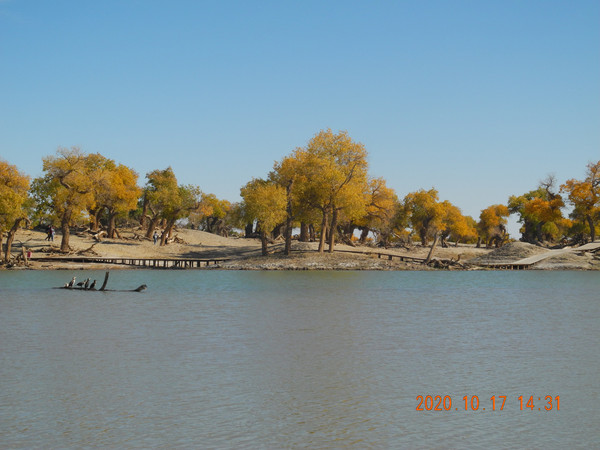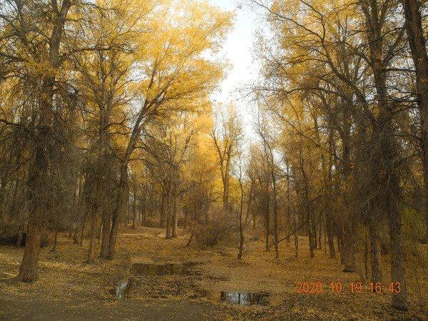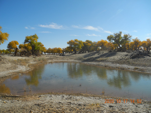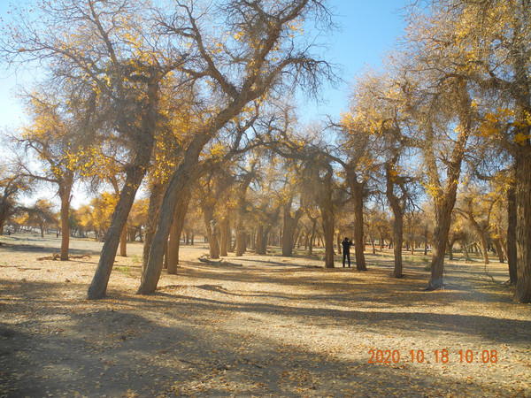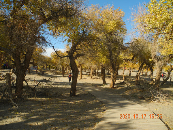 今天的胡杨林叶子有点枯萎,没有昨天的好,感觉昨天的期望太大了,总感觉今天的主景区应该比昨天的好,但是还是失望了。具体游玩过程就不表了,网上都能搜到,无非三道桥,四道桥(英雄林),一直到八道桥。