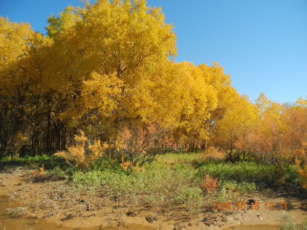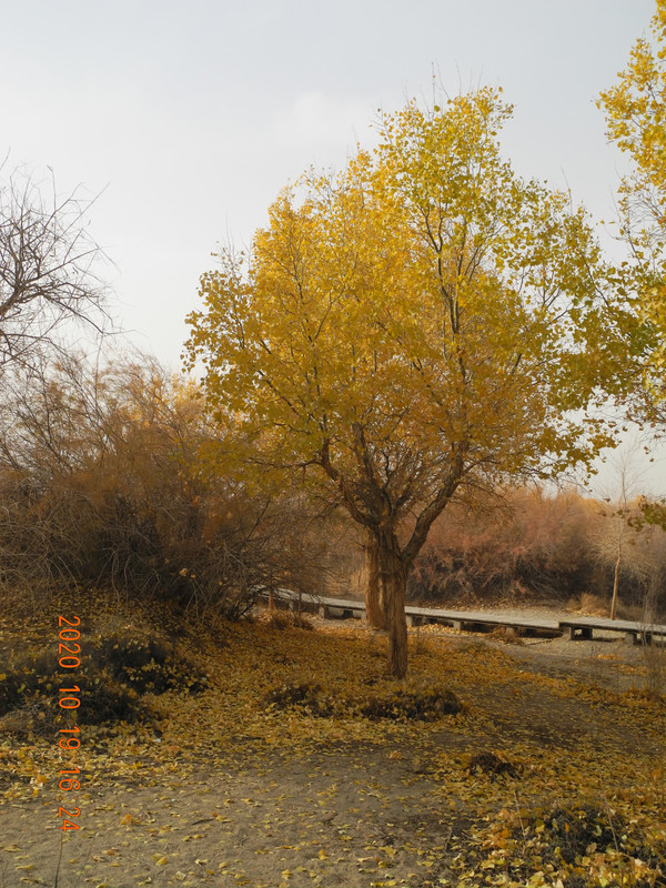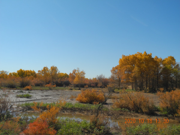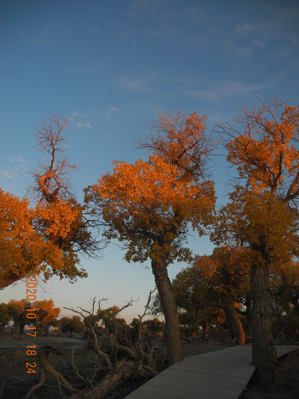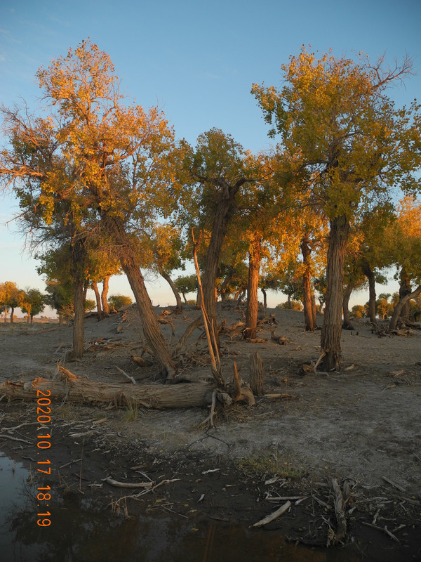 弱水金沙的胡杨林还不错,只是人太多,每张照片里都是人头,还有光线也不好。“七彩林”风光。