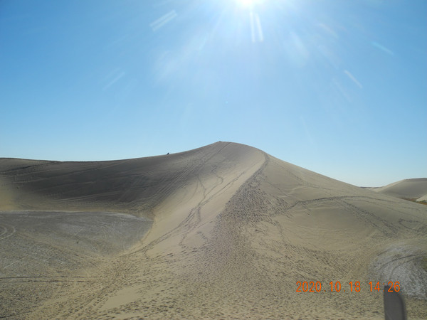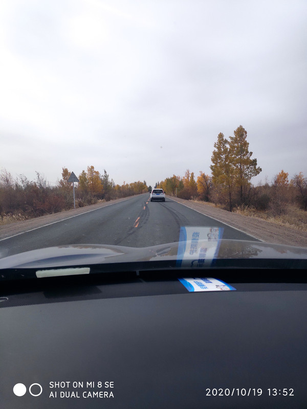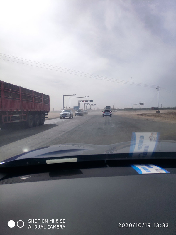 本来想从酒泉卫星发射中心那里过顺道看看,沿着导航说有一条路右转,但那条路上有栏杆开不进去,我们等了会儿看到有辆小车开过去栏杆自动打开,本想跟进去,后来想这里是军事禁区还是算了,继续金塔方向。后来路过去往酒泉卫星发射中心的一个加油站,我们停车休息旁边正好有旅游大巴也在,问了驾驶员卫星中心能进去吗,他说好像要先申请,那就算了后续不断有大巴及自驾车进入额济纳,估计今天沙尘暴一刮胡杨叶子都掉光了。果然,下午收到胡杨林微信公众号说四道桥英雄林已关闭。