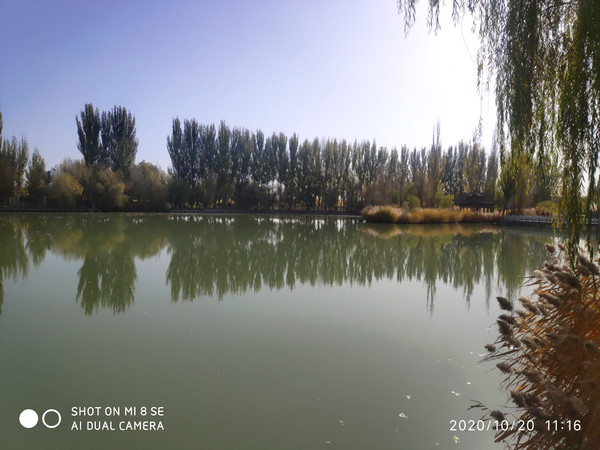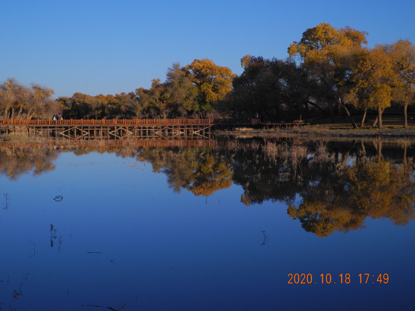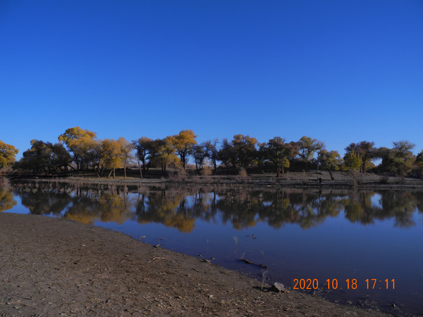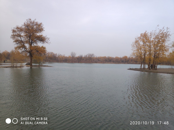今天风大,湖面有些涟漪,倒影出的胡杨有丝绸的感觉。这两天胡杨看多了,兴趣不是太大了。