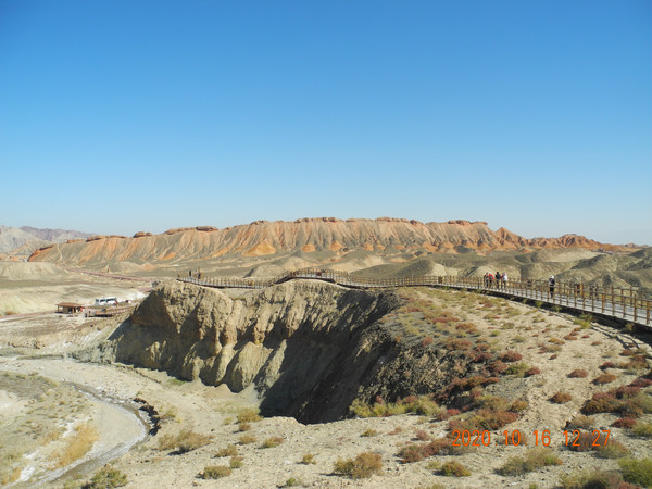 酒店留个影,今天目标--七彩丹霞。张掖临泽。上午11点多,买票进去,景点都要一站一站走区间车通行的。门票75。