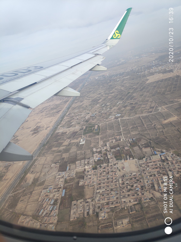早上在手机上看到今天额济纳会有沙尘,果然刚出额济纳,酒航路上沙尘阵阵。