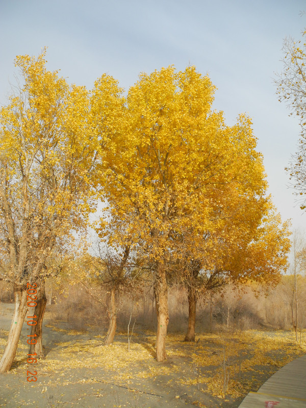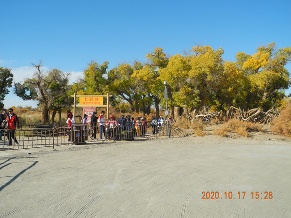 下午3点到达金塔胡杨林,门票65,交30元停车费能自己开车进去,金塔是人工林,本想额济纳的叶子都枯了,这里的好不到哪里去。到大门口先去问下从里面出来的游客,他们说里面还好,能够看看,所以我们买票入园。