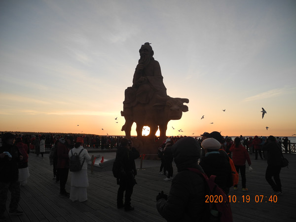 早起5点,居然只有跟我一间房的兄弟起来,其他人都起不来。算了我们乘早出发抢个好位置,黑灯瞎火的上车狂奔60几公里直奔居延海,路上出城后就没路灯,也没车,跟着导航不知走的对不对,转过弯去有一辆大巴开到我们前面,终于放心了,路没错,随着汇入的车辆越来越多,跟着大部队来到居延海停车场,大巴不多,自驾的也没多少,买票入园60门票15车费。一下车就冻得瑟瑟发抖,我已经将带来的衣服全都穿上了。抖着小腿一路跟到观景台,反正四周一片黑啥都看不见。