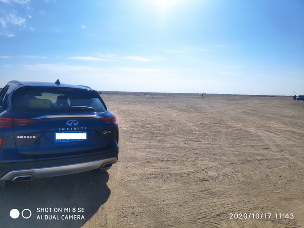 3个小时后在兰州中川机场找到租车的公司,一问当时我们定的大众探岳没有,好在给我们升了个级给了辆英菲尼迪 QX50,也按照以前的价格算,但超时要按英菲尼迪的价格算了。验完车设好导航第一站山丹,本来想住张掖但机场到张掖有近500公里路程,本着第一天先不着急赶路的原则,定在了小镇山丹。从机场出来一路都是荒山野岭连4G网络都没有,本来就饿着肚子,周边还没店这真是够急人的,2016年王哥来接我们的时候,外面都是餐馆,在上海的时候就想着一下飞机先吃碗兰州拉面呢,我们都拍着胸脯说机场外肯定有面馆。今天怎么都没了呢。