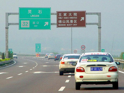 9月3日天公作美,是个风和日丽的好天气。车队从平遥出发后重新进入高速公路,只经过了将近两个小时左右的车程就进入了绵山风景区。不知是何原因,车队在即将抵达绵山时,眼前还是茫茫的原野,看不到一点山的雏形。但突然却在远方的云层中显出了连绵不断的山体。据说,绵山常年大部分都处于云雾之中。