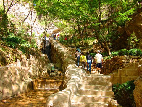 水涛沟风景区正好处于栖贤谷下山出口的不远位置。这里全长15公里,苍岩、古道、奇树、怪石、山花、野草点缀其间,千回百转的湍湍溪水长年流淌不息。