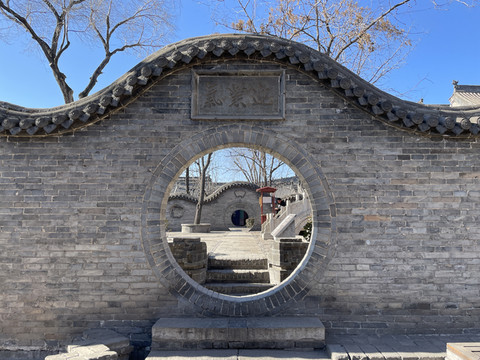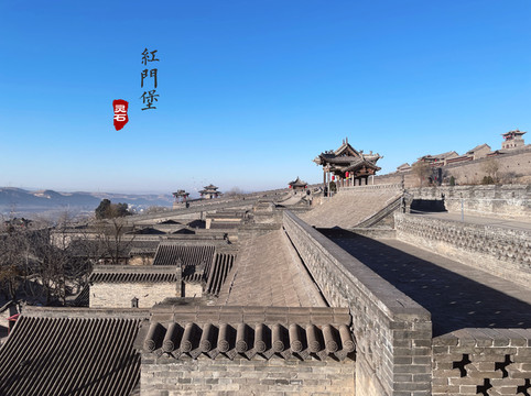 穿过引桥,到达另一片城堡——红门堡建筑群。如果说高家崖是王家兄弟两家的小区,那么红门堡就是王家各世代的别墅群。红门堡建筑群建于乾隆四年(1739年)至乾隆五十八年(1793年),既是堡,又似城,依山而建。从低到高分四层院落排列,左右对称,中间一条主干道,形成一个很规整的“王”字造型。同时隐含“龙”的造型。堡内88座院落各具特色,无一雷同。29座院落依主人身份、喜好的不同在结构和装饰上呈现出不同的风格,如今辟为中华王氏博物馆、力群美术馆等。
