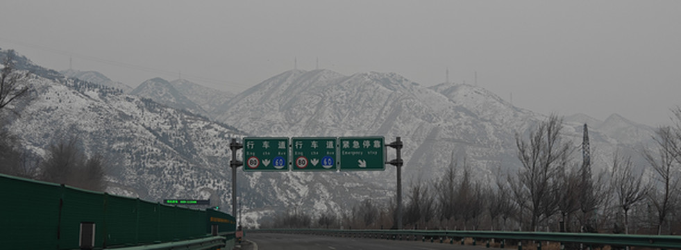 第二天(年初五)的清晨,天依然还是灰蒙蒙的,车穿过盐湖大道,拐上了高速公路,中条山上的积雪还没融化,天地间只剩下黑白二色,水墨丹青呈现在眼前,说不出的国画意境,车在画中,画中有车,随着车子的前行,景色也在变换,仿佛是一出写意国风动画!
