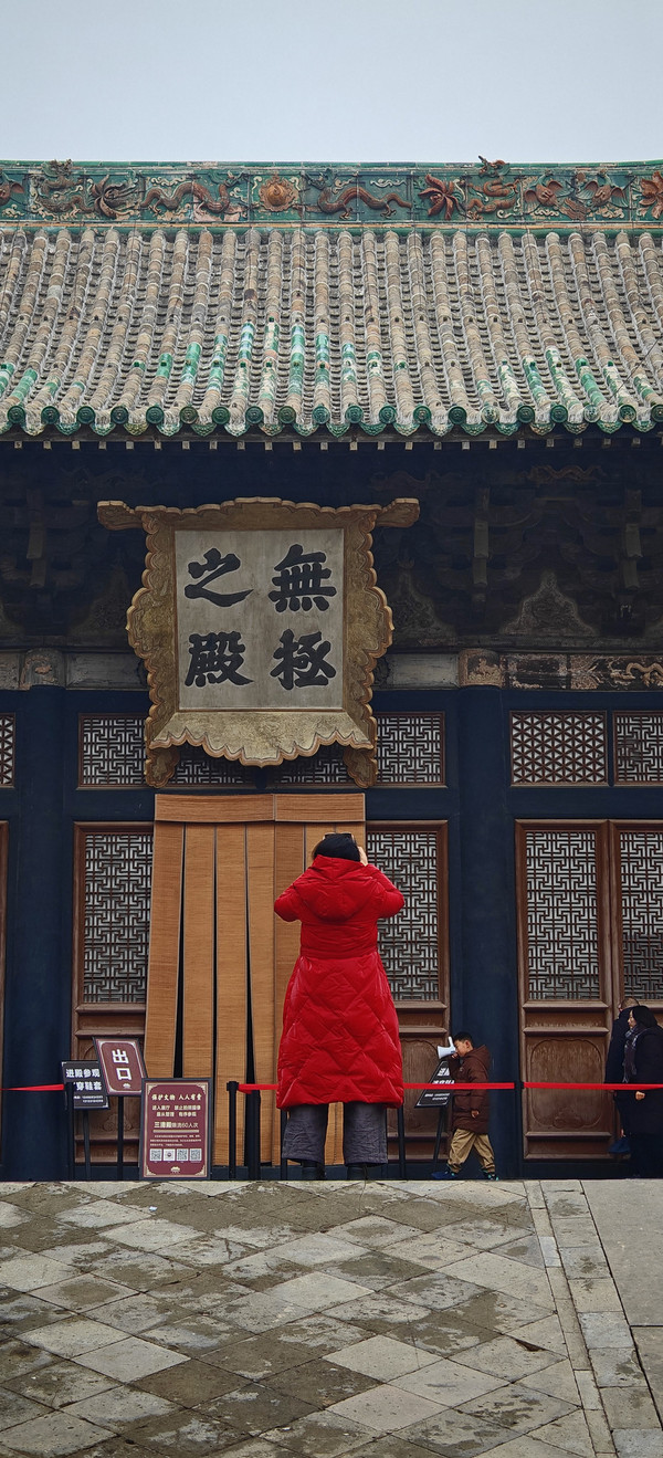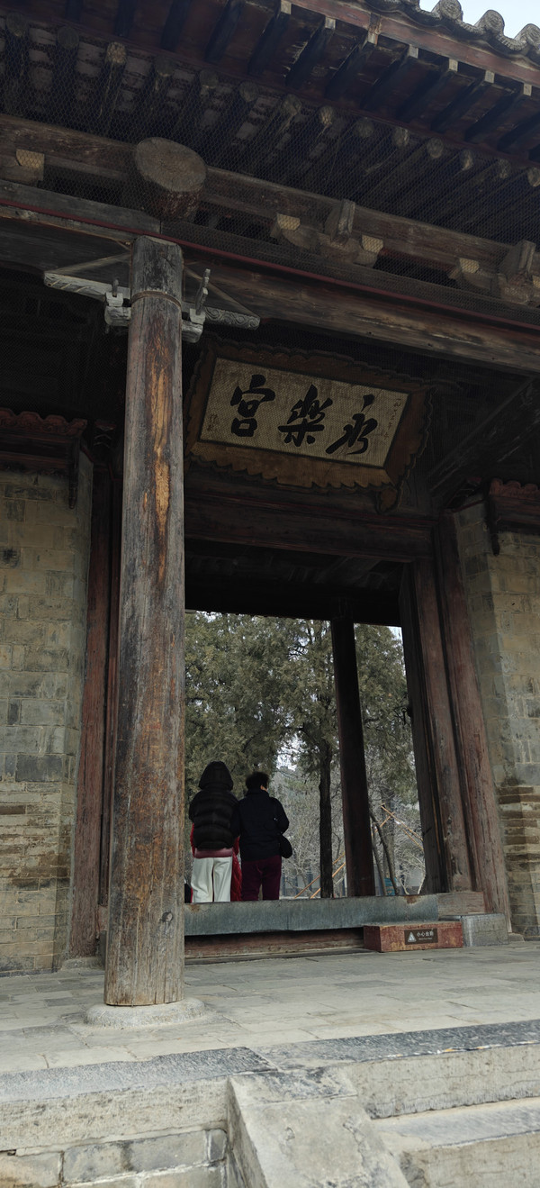 永乐宫由三个大殿组成:无极殿、纯阳殿、重阳殿。最大的就是无极殿。里面的壁画《朝元图》被誉为中国古代绘画的巅峰,一点不为过。(以下的文字择自网络)