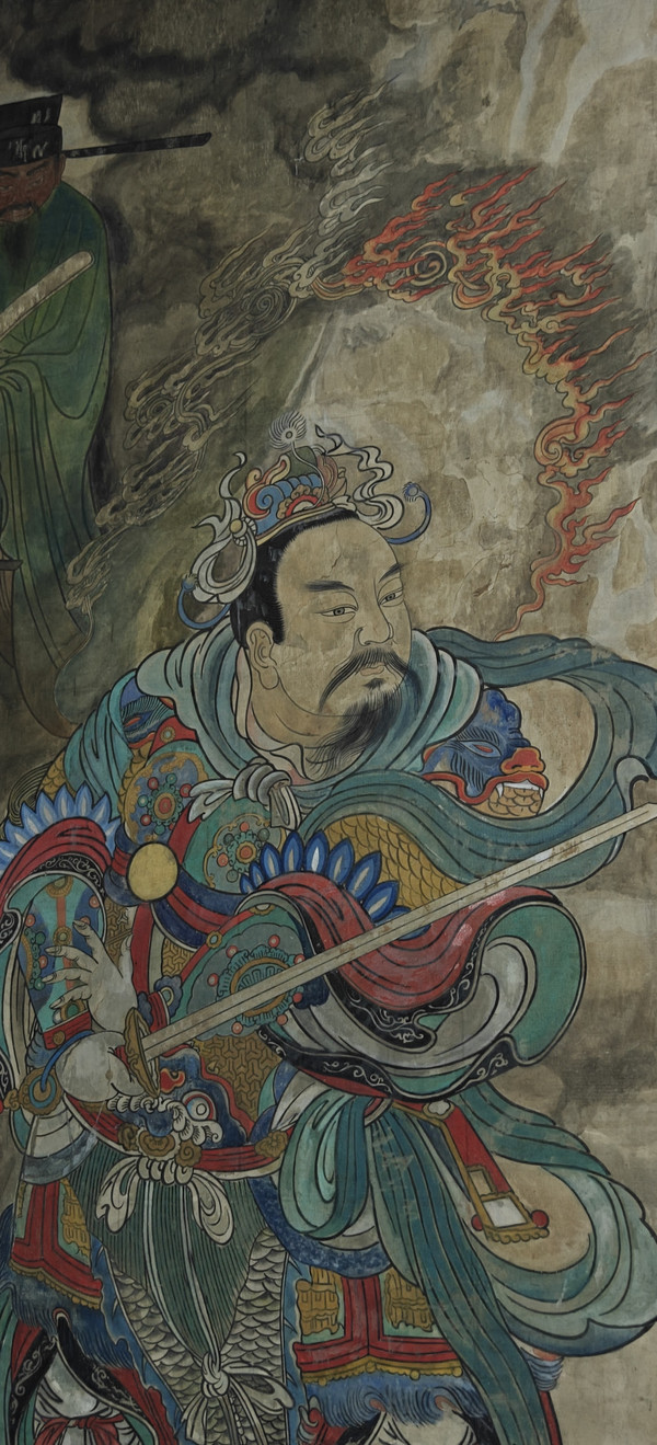 《朝元图》不仅是中国文化遗产的重要组成部分,还承载着中华民族的智慧和创造力。它通过生动的人物形象和细腻的笔触,展现了元代壁画艺术的精湛技艺与深厚底蕴。画中的人物形象各具特色,从精致的云鬓到细腻的蚱须,每一处细节都刻画得栩栩如生,令人叹为观止。《朝元图》对后世的绘画发展产生了深远的影响。其独特的艺术风格和高超的绘画技巧,为研究中国古代宗教、文化和艺术提供了珍贵的实物资料。画中的人物形象和服饰细节,反映了元代社会的生活风貌和审美趋向,具有重要的历史和文化价值。