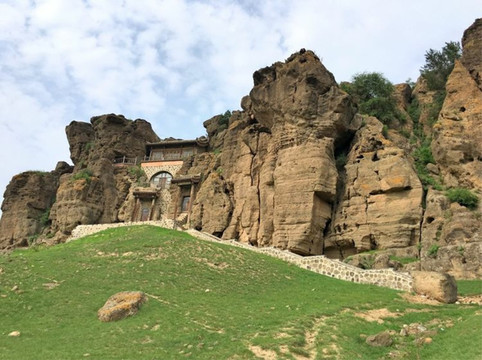 古堡又称"孤堡",就坐落在小龙门东南的高地上。登临洪门寺崖顶,极目远眺,首先映入眼帘的就是大辛庄古堡的堡墩,以堡墩为参照物驱车前往,给我们惊喜的不仅仅是有着磨砖对缝风骨的老宅子,在村子中心还有一块巨型火山石。在村子的东面有一个土筑古堡,古堡的围墙历经几百年的侵蚀至今仍给人以壮观威严之感,在古堡的门前矗立着一块石碑"明代古堡"是阳高县重点文物保护单位。