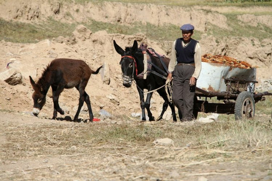 这里有边塞雄关的古长城,当年是骑兵厮杀的古战场。怎么没有马匹只见驴呢?或许,烽烟的熄灭,令战马归田,可驰骋沙场的马,耕地拉车的确不如驴呀。关键是,养马和养驴,成本有高低,种田也讲效费比呢。于是,作为战力的马退出了战场,甚至退出了田园,让位给了他的那些笨拙、愚蠢但吃苦耐劳的同类。悲呼! 和平 时期,雄风不再浩荡,驰骋没有意义,只是徒步完全可以,于是驴有了广阔天地。还好,驴有点倔脾气,还没阉割彻底。