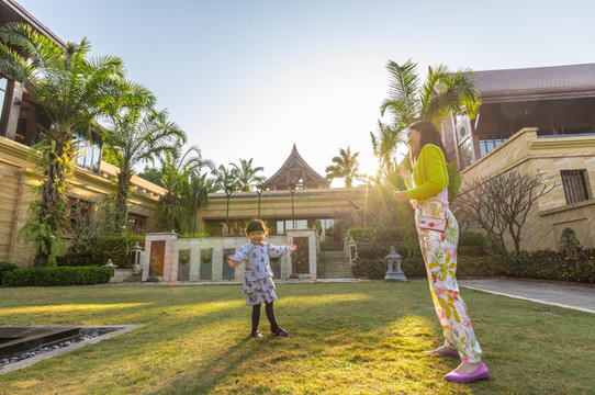 如果一定要三家酒店分出比一样的感觉,那么万达文华的综合颜值是最高的。顶着首家万达文华度假品牌的酒店,占据了整个度假区最深处、制高点的位置,全别墅的客房刷新了版纳平均客房面积,交出完美的答卷。