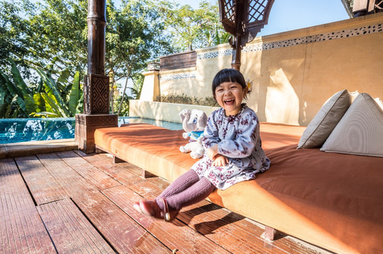 房间主题风格从户外门上孔雀或者大象的把手便能大概知悉屋内主要的风格。客房两处大门的布置,更有庭院深深的感觉。酒店所有的房间都带独立泳池。这是酷爱游泳的人最大的福音。凉亭、花园、闲适发呆。