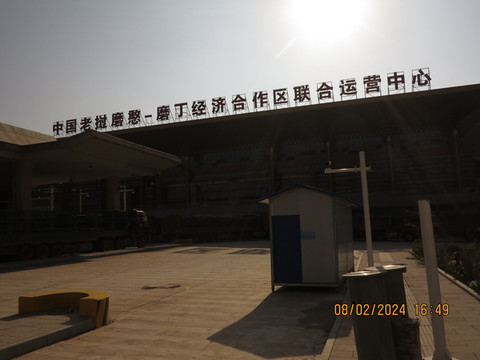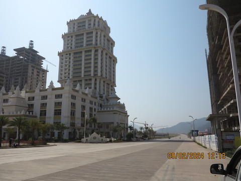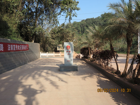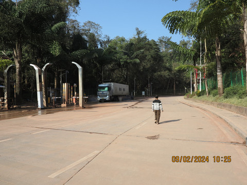 下高速登记,顺利沿着东盟大道到了民宿--云熙别院休息。整个小镇就一条东盟大道贯穿前后,这个民宿在一片居民的自建别墅区,老板装修的非常好,卫生也到位,各种设备也非常好,真的出乎意料,宝宝都说这是五星级的民宿。放下行李在老板指引下,先沿着大道边的岔路区看看新国门,这里是走货运车辆的,灰尘非常大,感觉还没有完全建好,没有啥人,拍照留念。