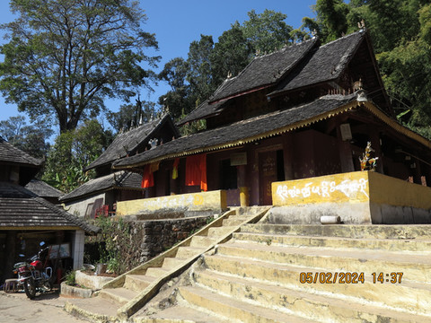 第四天:天气很好,一早最要紧的是买磨丁到琅勃拉邦的火车票,北京时间7点半准时抢票,比国内段要好买很多,买好票,心里踏实。先去不远的翁基佛寺看日出,游客不多,清净又漂亮。