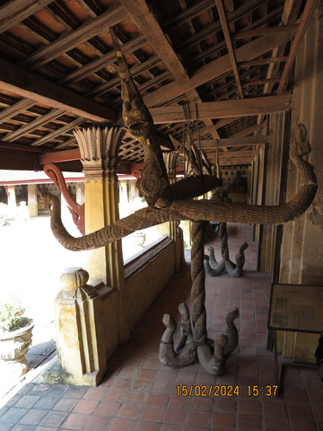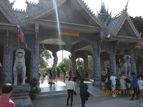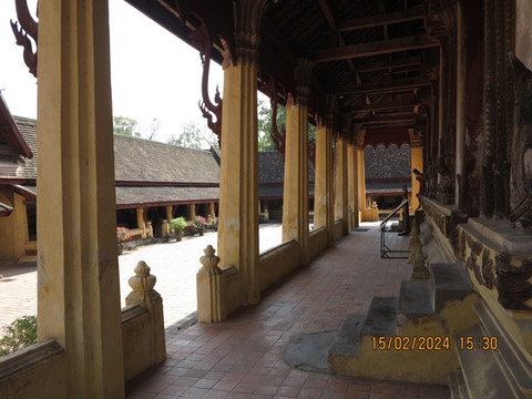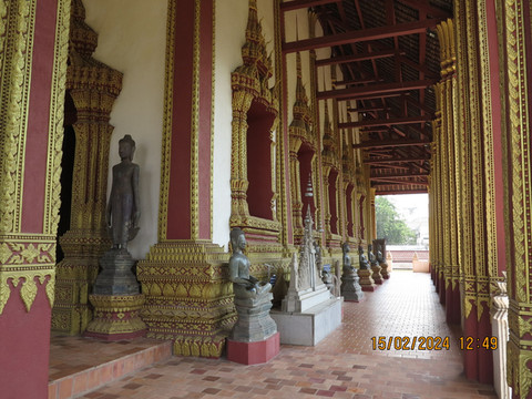 对面就是西萨格寺(Wat Si Saket),这里又叫沙格庙,万象最古老的寺庙。始建于1818年,是根据澜沧王国时期最后一位君主阿努冯国王的命令而建的,是老挝历史上著名的寺庙。1829年幸免于万象城的战火。但令人遗憾的是大多数文物在战争中丢失,至今仍保存完好的仅剩下大佛像1尊、铜佛像2尊和外围回走廊上的120尊小佛像,人们还能通过他们看到老挝19世纪初繁荣的文化艺术。院子里的回廊,感觉有高棉时期建筑特点,大殿内部供奉各种佛像,墙上无数小佛龛值得一看,据说还有一些壁画描写佛教徒的生活。寺庙边回廊上还有一个木质古董浴佛器具,是在老挝新年泼水节时,用它把净水泼洒在圣像上。