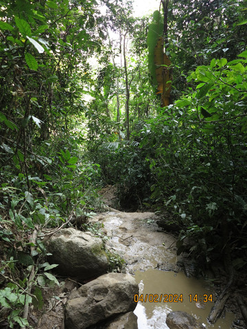 村民都是基诺族,他们说他们还是共同分配的一个机制。向导的名字就叫优周,他们没有姓,基诺族是1979年被正式确认为单一民族,是中国最后一个被确认的民族,中国境内基诺族的人口数为二万多人,他们好像有语言但没有文字。导游说,之前他们被认为就是一个部落。跟着导游一路上山,到了一个路口,停车开始雨林徒步。这里徒步有两条线路。4KM,8KM,我们带着老妈和宝宝,选了4KM 的线路。导游腰间别着刀,带着我们一路下坡,穿过山坡上的橡胶林,到了谷底开始体验热带雨林。这里基本下山,涉水,玩耍,吃饭,爬山,一路穿行再雨林中,这里是基诺族的地盘,山谷中还有村们门自建的一些秋千,爬树,竹排等活动项目,都算在了向导费里,宝宝玩得很开心。