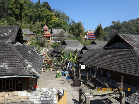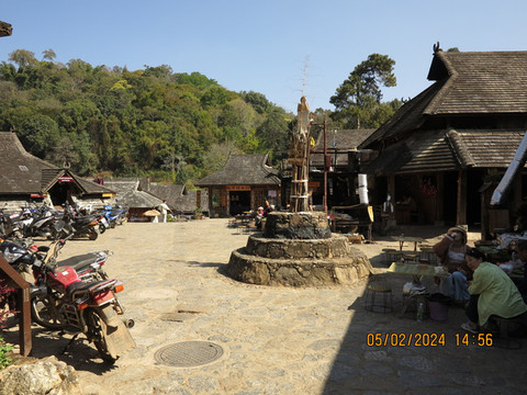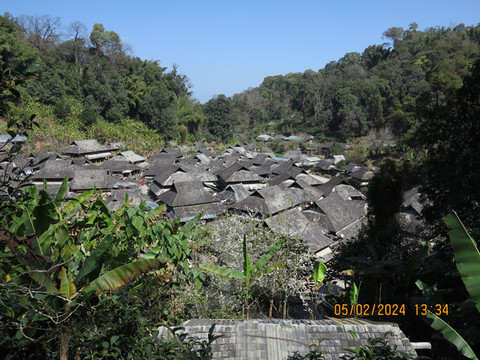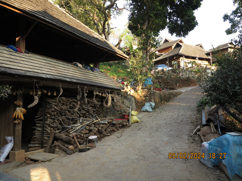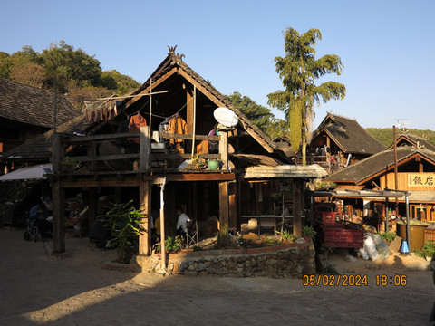 驱车离开古茶林,晚上住到翁基古寨,定了75号民宿,民宿可以停车,直接开车进入村子,村里路很小,差点开错路,有惊无险到了民宿,非常满意的一个民宿。这里是布朗族的一个古村寨,听说由于之前村子被火烧掉过,现在房子都比较新,住宿条件比周边的村子要好,吃住都方便。这里比糯干的住户还要少一些,这里的布朗族生态文化保留和传承完整,被誉为“千年布朗古寨”。古寨依旧有佛寺、寨门、寨心、古柏树等,走走非常舒服。