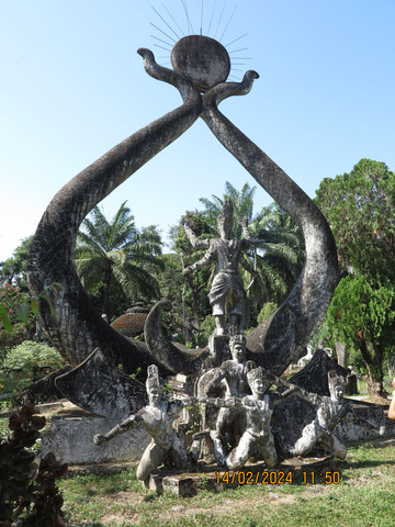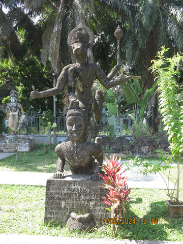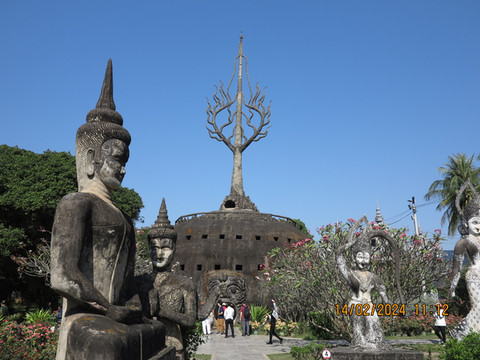 香昆寺又叫佛像公园(Buddha Park),就在湄公河畔,这里其实是一个雕塑公园,来这里的旅行团很多,门票不贵,还有中文导览器。园中的所有佛像都是混凝土现代作品,香昆寺还被誉为“混凝土创造出来的奇迹”。但看看这里的介绍,可以了解老挝佛教和印度教的不少知识。这里可以看到各种大神,包括了湿婆(Shiva)、毗湿奴(Vishnu)、阿朱那(Arjuna)、观音以及印度教和佛教里所有可以想象到的神灵形象。这些神灵和我们国内的佛教中的神佛是不大一样,还是值得一来的。