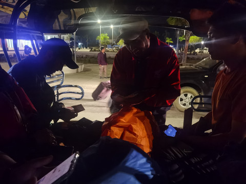 老挝这里入境海关有几点注意,这里没有安检,一切随意。自驾游客不少,人员下车也有一套流程,似乎也不复杂。我们前一天吃晚餐的那个老板娘告诉我们这里完全可以不给小费,但国门前换钱的黄牛说多少会给一点,称之为盖章费。我和老婆决定挑战0小费过关,我们扛着行李进大楼前,会有一个桌子和工作人员收取所谓盖章费,下面介绍牌写着是老挝旅游基金,十块钱人民币左右,会有收据,很多不知情的旅客会支付这笔钱,我们询问对方,这个是必须的吗?得到答复是自愿的,和过海关没有关系,工作人员还是蛮客气的。我们拒绝支付这笔费用,直接进入联检大厅,排队等过海关。大厅右手边是落地签证窗口,好像二百多人民币,非常方便,立等可取。游客不多,排队到窗口,海关人员以我们没有填写入境单为由要我们每人支付十元的服务费,我们询问后得到答复是,我们可以自行填写,就不需要付费。我和老婆决定不能纵容乱收费行为,回头在不大的大厅寻找入境单,结果一张也没有找到。我发现入境单在海关盖章窗口后面的一个工作台上,那边也有工作人员,我直接示意要4张入境单,工作人员没有刁难和废话,直接给了我们。老婆一顿填写,还帮助一些过境客人指导填写。中间一个自驾游。全家七个人,填写到一半,直接奔溃,决定去付服务费过境,开心就好。老婆一顿操作,中间还填错两张,我直接又去要了两张单子,非常顺利。填完窗口排队,顺利盖章入境。盖章柜台后面那个给入境单的桌子处的工作人员会详细检查入境单信息,好在一切顺利通过。观察了一些发现如果单子有错误,工作人员会因此索要十元的服务费啥的,估计你也可以重填。这里工作人员都蛮客气,主打一个信息不对称和让你奔溃主动给服务费,不是太凶恶的那种,据说这点小费也是工作人员的奖金收入,之前看过介绍,老挝还是一个比较腐败的国家。老妈在过关过程中无比动摇的要给小费,我们损失了半个小时填单时间,但坚持住了,还是蛮开心的。似乎这样的待遇真的是针对中国入境人员的,边上欧美游客似乎都很顺利过关。