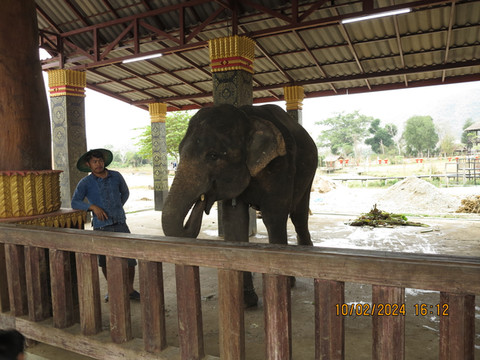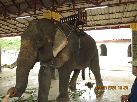边上有一条土路可以爬上山顶看瀑布,陡峭的土路不好走,老婆放弃了。一路走出景区,周围植物看看,非常值得推荐的一个景点。回程的突突车上,发现有个吊床,宝宝睡着吊床一路颠簸出发。十来分钟就到了一个大象饲养的地方,喂大象不贵,大象不喜欢吃香蕉,喜欢吃地瓜。