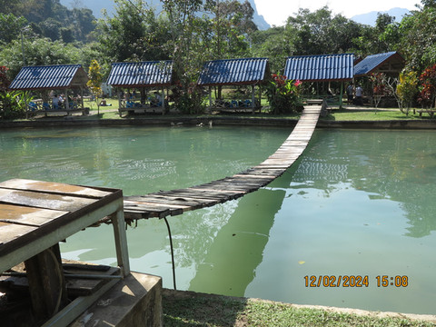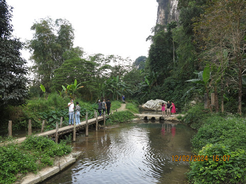 三个蓝洞,感觉每个都可以休闲慢慢玩一天,门票也便宜,个人最喜欢二号蓝洞。离开三号蓝洞,开了近一个小时的突突车,来到今天最后一战,Nang Far cave是一个溶洞。洞前有座桥,跨越南松河,非常漂亮,河里有人玩皮划艇。宝宝在车上吊床睡着了,老妈和老婆去探洞,半个小时不到,老妈他们回来了,说洞一般般,和我们贵州不能比。
