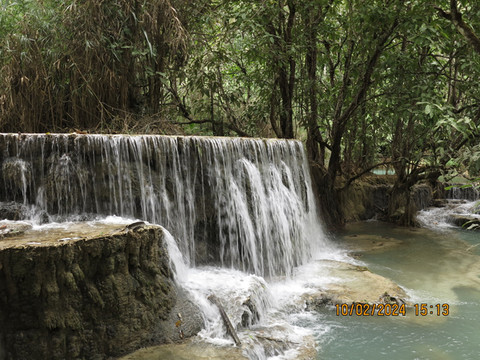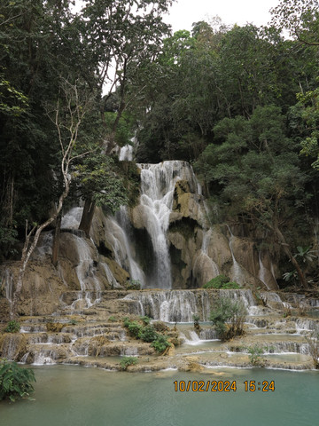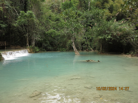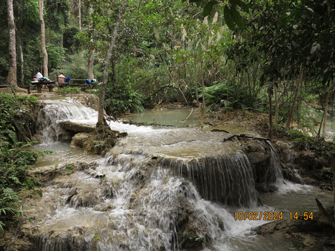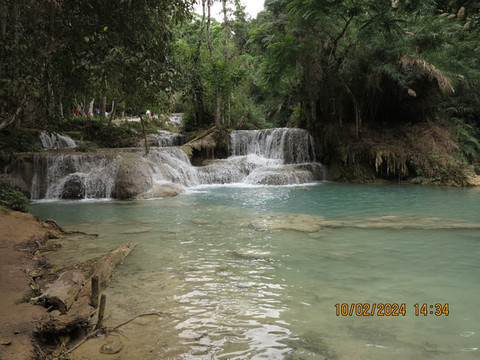 司机准时过来,琅勃拉邦这里基本都是旅游业,司机还是很客气,路都是土石路,一路狂奔,沿着湄公河,尘土飞扬,路上都是去关西瀑布的游客,各种突突车、面包车、摩托车,自行车,游客都很嗨,还会互相打招呼,40分钟左右顺利到达,门票2万基普,还带景交车。