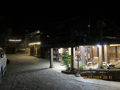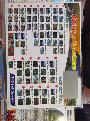 出了火车站,这里没有琅勃拉邦热闹,门口只有突突车,广场也有点冷清,4万一个人送到酒店。五六公里的路程,到了万荣康菲蒂花园度假村(Confetti Garden Resort),酒店门口居然是夜市,我们只能路口下车拖着行李顺利入住。酒店没有琅勃拉邦好,有点快捷酒店的感觉,好在房间够大。门口转一圈,在酒店预定了第二天万荣包车游览的线路,这里由十多条户外线路,我们选择了号称铁人三项的线路(摩托山,蓝洞一号,蓝洞二号,蓝洞三号,溶洞,皮划艇),合计一个人45美元,算是最贵的一条线路了,也还可以接受。付了1100元人民币,这些行程我们怕体力和时间不够,老板娘帮我们把皮划艇放在了第二天游玩,费用包含所有门票以及一顿饭。老板娘让我们回到酒店给我们吃晚餐,说旅途中的午餐不是太好,可以自备干粮,另外那边游览区域吃也是很方便的,接受老板娘的建议。