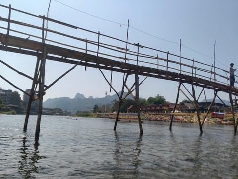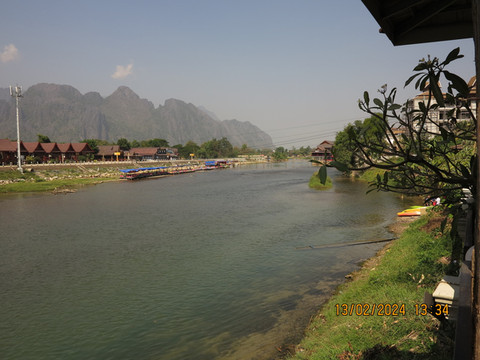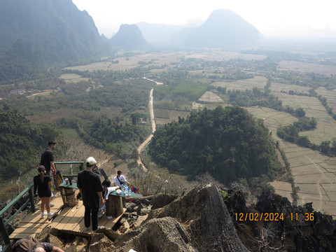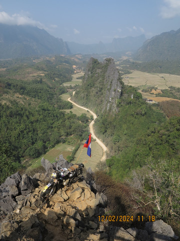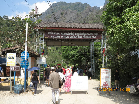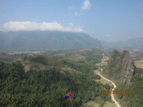 第十天:一早酒店吃饭,司机准时来接,出发。天气炎热,发现万荣这里韩国人特别多,亚洲面孔的游客,大多数都是韩国人。万荣是老挝的一个喀斯特地貌小镇,酒店周围就可以看到一些喀斯特地貌的山头,小镇很小,但却是全世界户外背包客的天堂,有很多山水风景和水上运动,滑翔伞,热气球样样都有,地貌有种广西贵州的感觉。突突车一路狂奔,第一站去摩托山。路上不时会遇到开越野车的团队游客,这里娱乐越野车都是直接上马路开的,出了不安全,非常刺激。半个小时到摩托山下,门票2万,后来发现万荣这里基本门票都是2万一个人,相对国内景点门票,真的非常便宜。