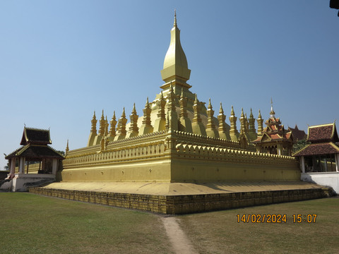 老挝的佛教建筑都蛮金碧辉煌,虽说有历史都但建筑大部分都重修很多次。围着塔銮走走看看,祈福一下。广场上有澜沧国王的雕像,塔銮前后都有一座寺院,安静的休息一下,非常不错。