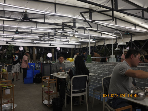 往回穿回东盟大道,小年夜,路边吃饭也是不少,很多晚上的烧烤店都开始了准备晚上的生意。路边看到义来酒店门口的饭店,直接进去吃饭,老板娘很客气,饭店也是她家的,小年夜没啥客人,酒店停车场很多都是要去老挝自驾的内地车。厨房做了点家常菜,口味非常不错,老板娘还送给我们刚杀的年猪烤肉,好吃又实惠,老婆说感觉这顿饭是老板娘请客的。吃饭时还请教了老板娘关于关口过境的一些知识,感觉非常不错。